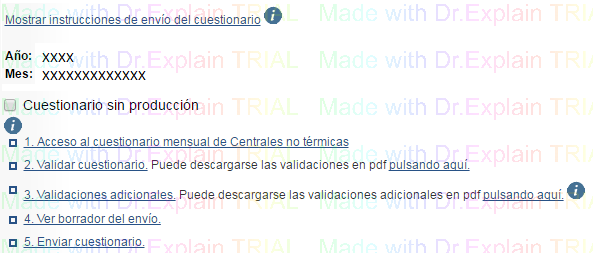 Si seleccionamos Productora como tipo de cuestionario, la central seleccionada es No Térmica y tras pulsar CONTINUAR en la anterior pantalla, se nos mostrará la siguiente pantalla con diferentes opciones.