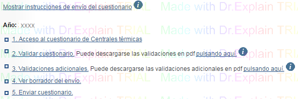 Si seleccionamos Productora como tipo de cuestionario, la central seleccionada es Térmica y tras pulsar CONTINUAR en la anterior pantalla, se nos mostrará la siguiente pantalla con diferentes opciones.