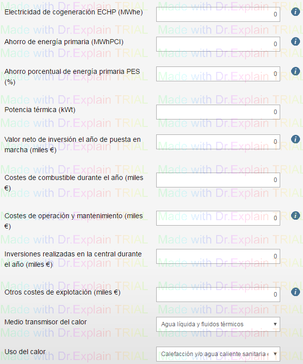 El proceso será el mismo que para las centrales térmicas, pero para las que son de cogeneración, se muestran campos adicionales que hay que cumplimentar.