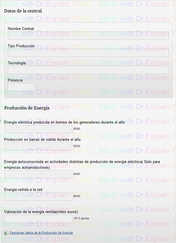 Posteriormente vienen los datos de la central y producción de energía, con la opción de descargar los datos en Excel seleccionando.