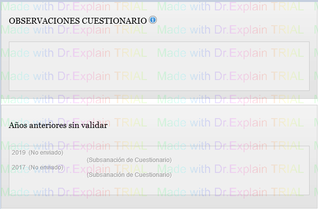 Y por último se visualizarian las observaciones del cuestionario, los años anteriores sin validar, la información adicional del expediente y las acciones a realizar si las necesitara.