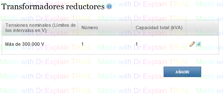 Para añadir los datos de otra tensión nominal debe pulsar el botón