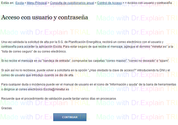 Aparecerá la siguiente pantalla indicando que se va a proceder a una validación por parte de la Subdirección General de Prospectiva y Estadísticas Energéticas. Una vez realizada la validación el usuario recibirá un email con la contraseña de acceso a ESCILA.